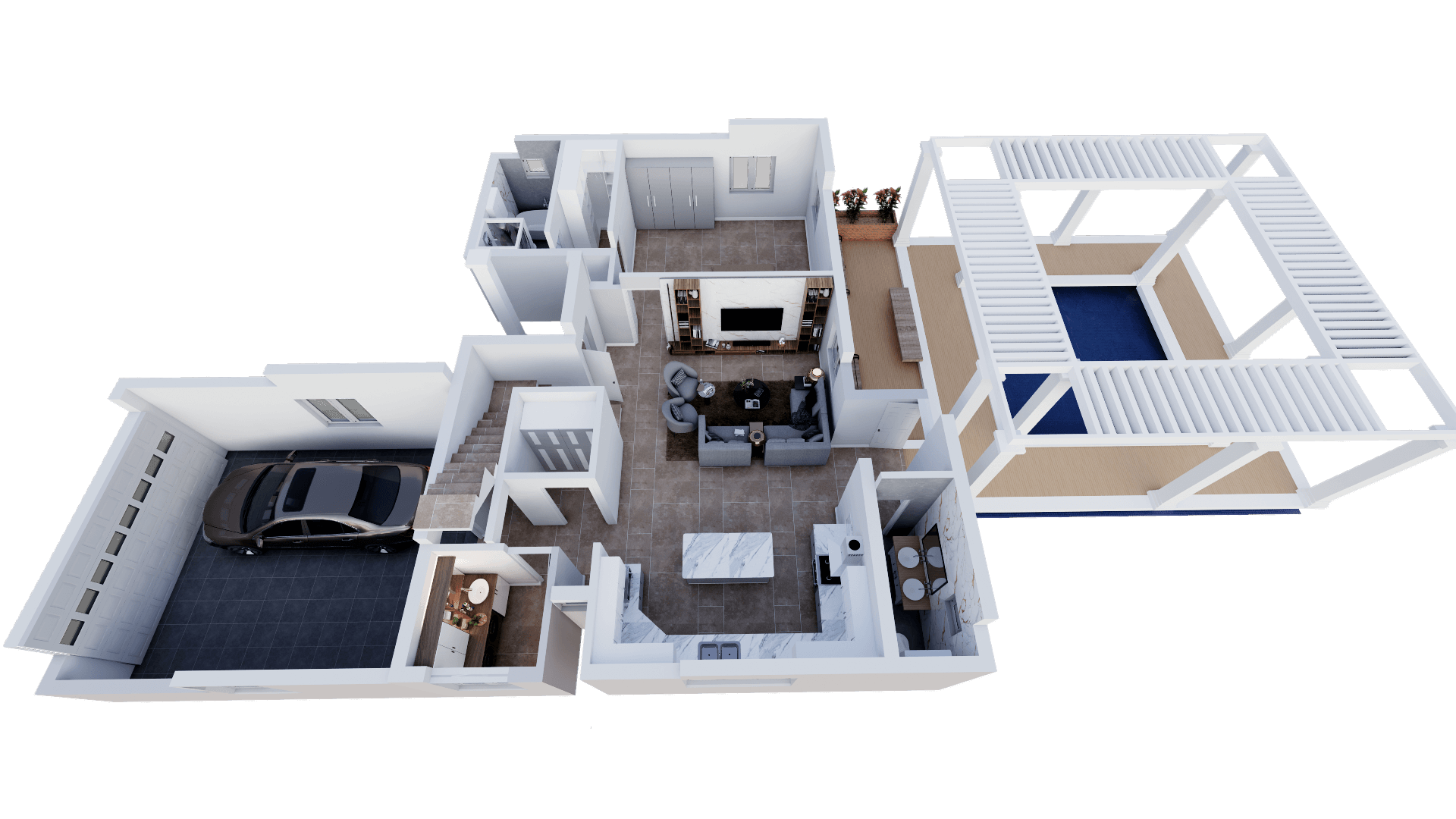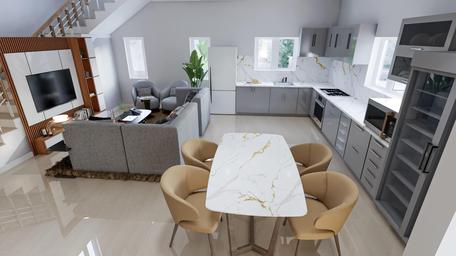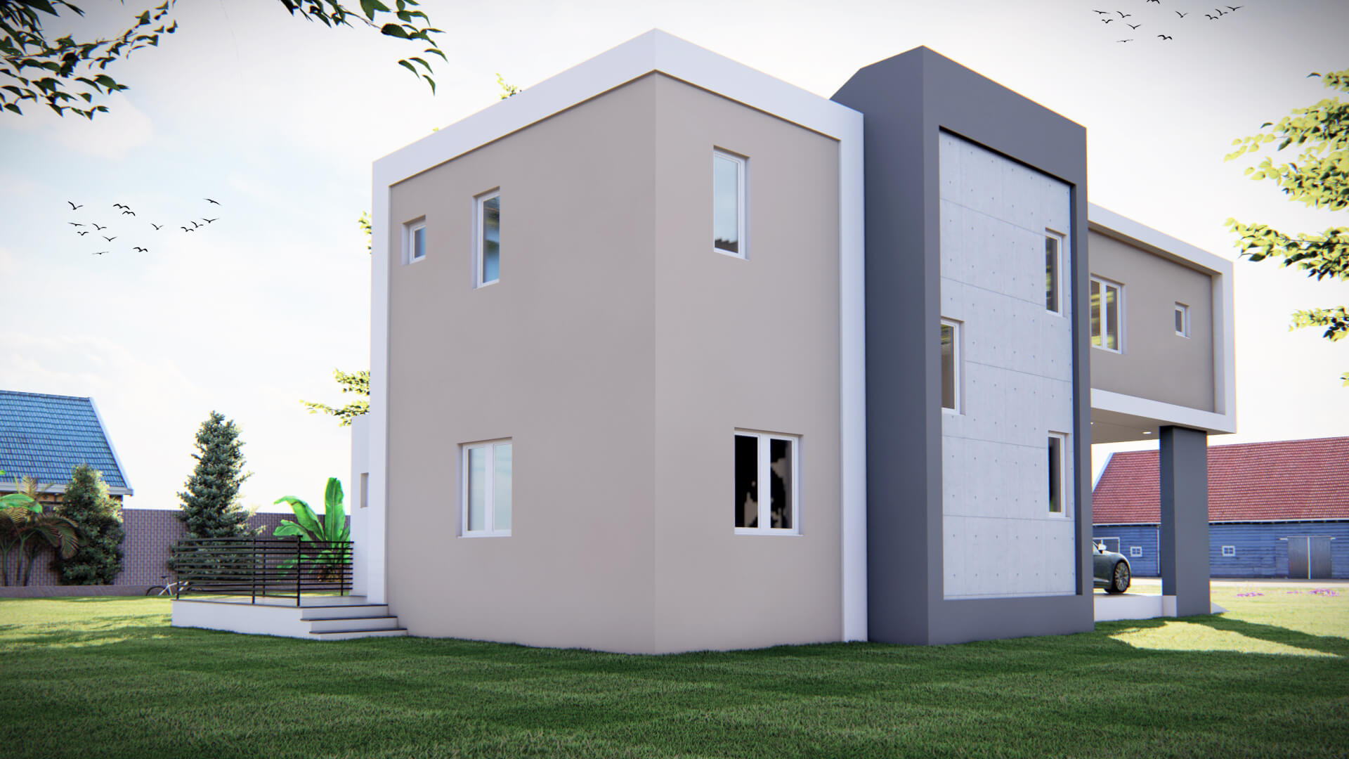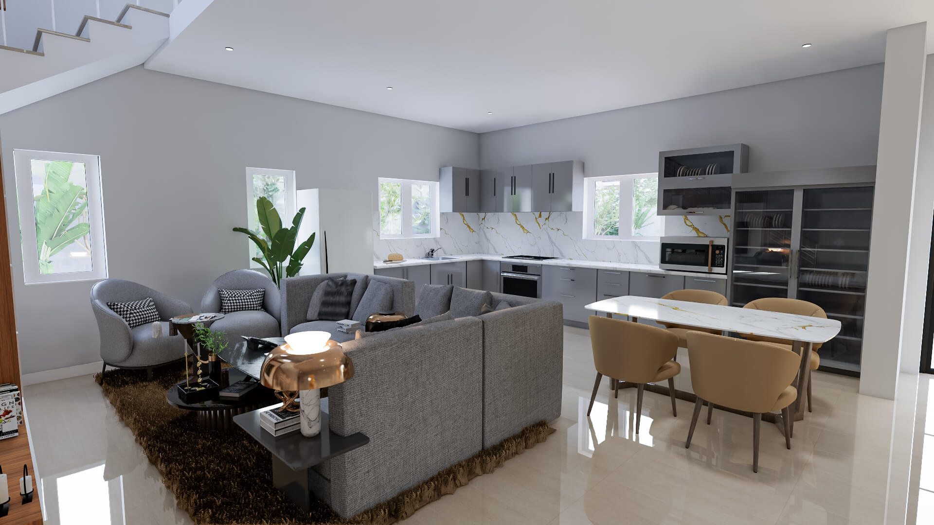 A spacious 4BHK duplex home spanning 3993 sq ft, featuring a modern staircase design, ample parking space, a cozy patio, four well-appointed bathrooms, and an additional powder room. Designed for comfort and functionality, this home offers open, airy interiors and a perfect blend of luxury and practicality for family living.