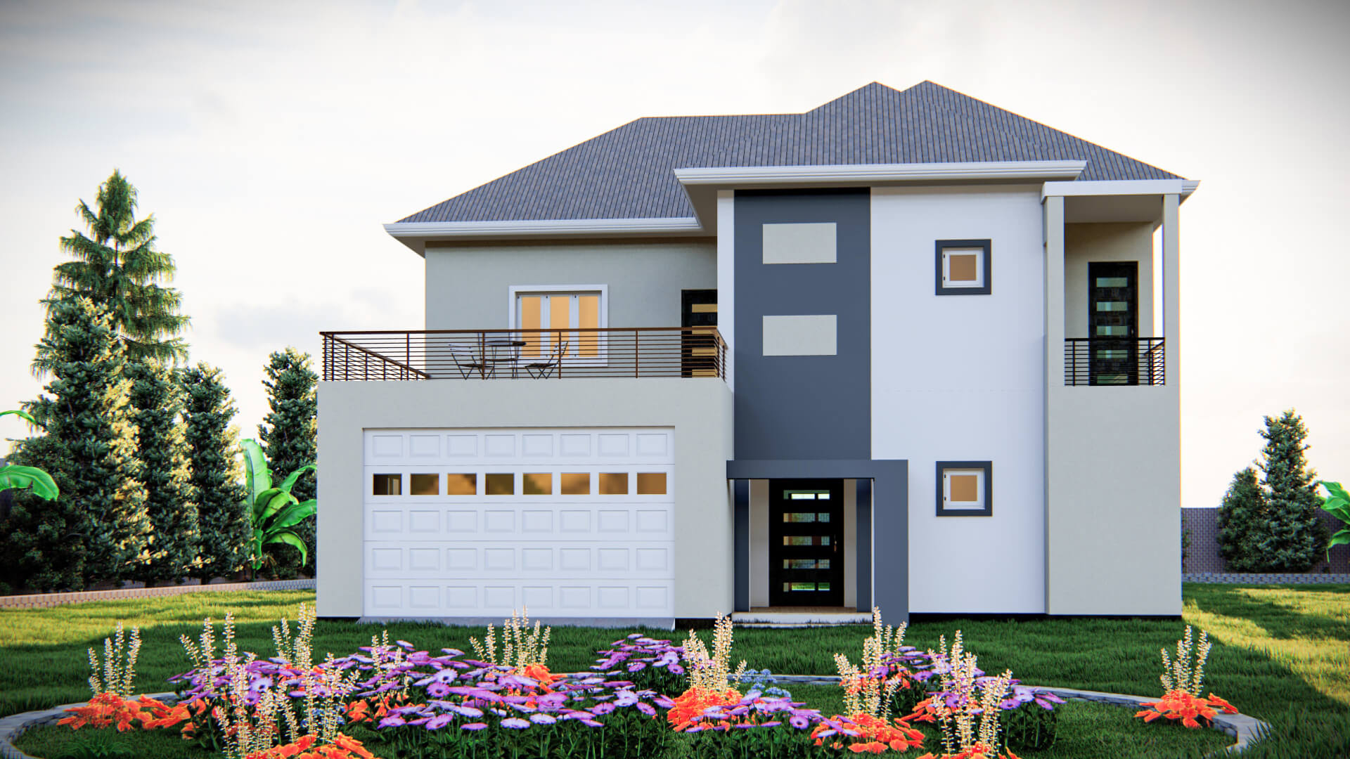 A spacious 4BHK duplex home spanning 3,186 sq ft, featuring a modern staircase design, ample parking space, a cozy patio, four well-appointed bathrooms, and an additional powder room. Designed for comfort and functionality, this home offers open, airy interiors and a perfect blend of luxury and practicality for family living.